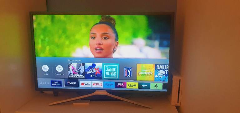 Samsung UE48H6400AK, purchased in 2014. Display: 48-inch LED-backlit LCD screen, 1080p Full HD resolution, 400 Clear Motion Rate (CMR) for smooth action. 3D Technology: Active 3D capability (active shutter glasses required). Smart TV: Includes
