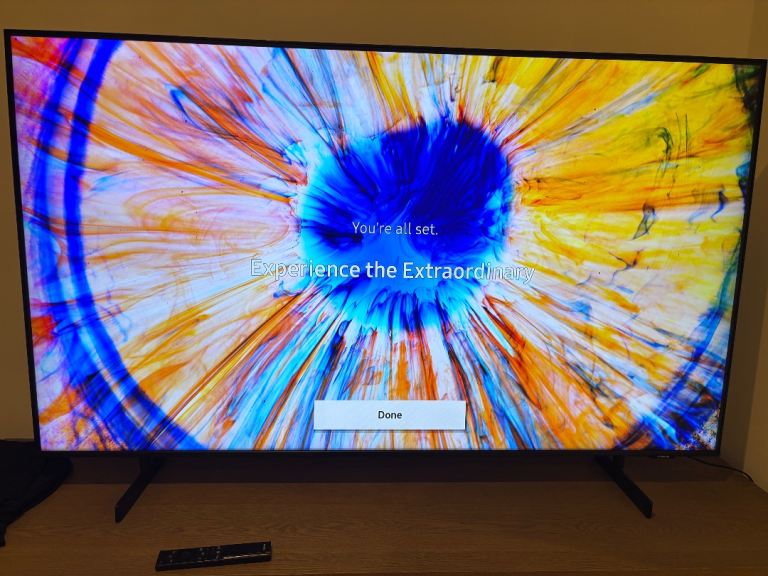 Model number: UE55U8000FK. Dimensions and Weight Screen size: 55 inches. Size of TV H70.78, W122.46, D7.66cm. Slight black imperfection on screen towards top left, shown in the second image. Otherwise in very good condition, works fine.