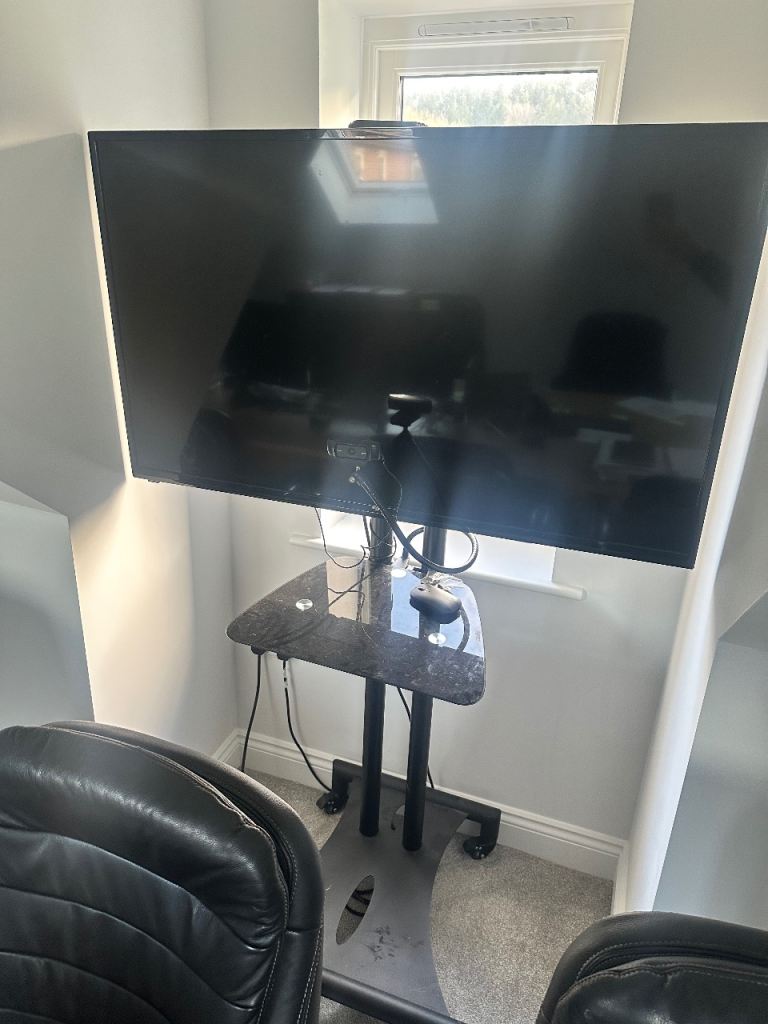 As pictured, this is a videoconferencing setup for an office. Includes: - TV - Stand - Webcam - Micro PC (attached to back of TV) This is a windows system we have used to do teams and zoom meetings etc in our boardroom. Can be used for m