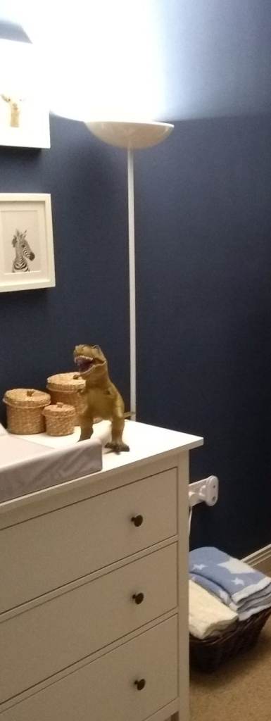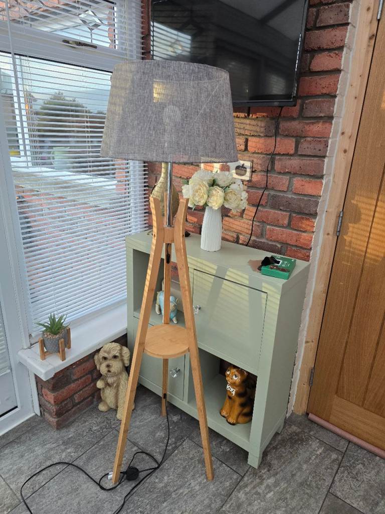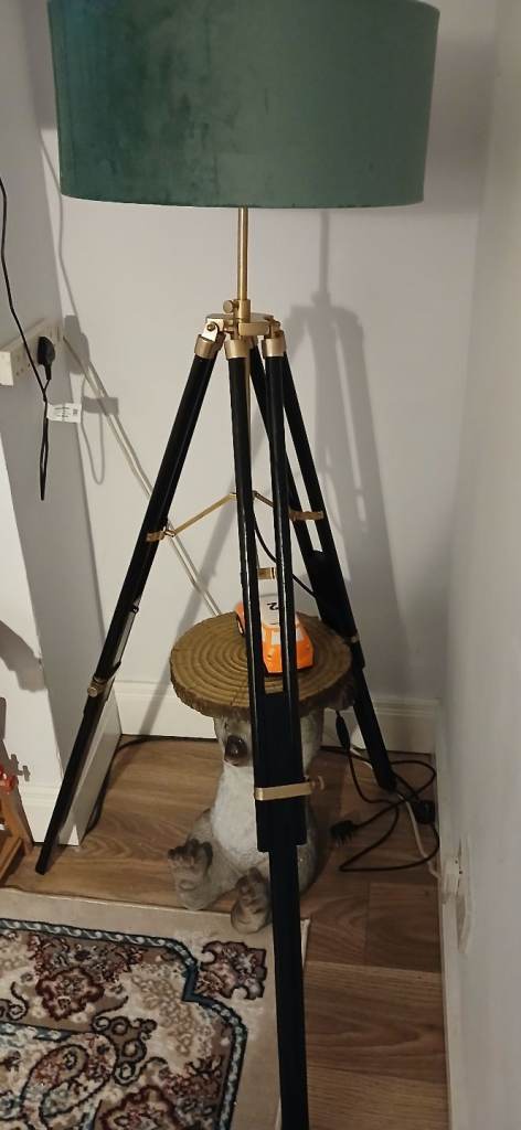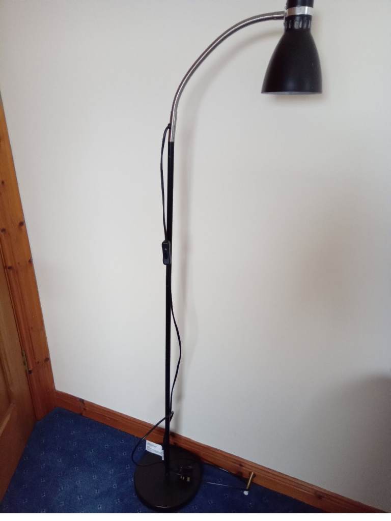Black floor lamp with flexible stem and easily accessible on/off switch. Provides useful light for reading etc. In good condition.