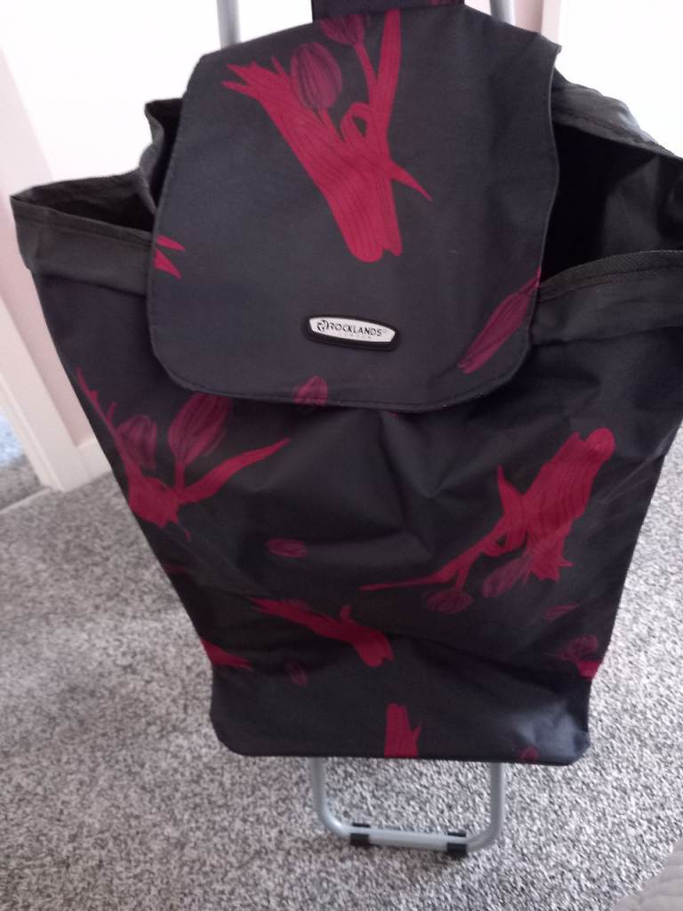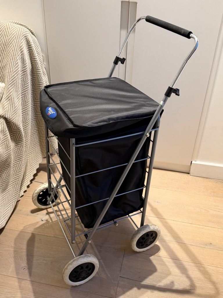 Black shopping trolley light weight and folds down for easy storage
