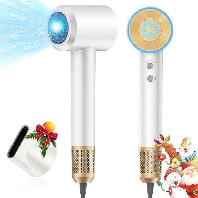 White and Gold High-Speed Hair Dryer - Low Noise, Thermo-Control 4 temperatures - Never Used (Brand new) 2 Speeds Worth about £50- £60 (according to online) My friend has the same hair dryer (in a different colour) and says it is excellent Gif
