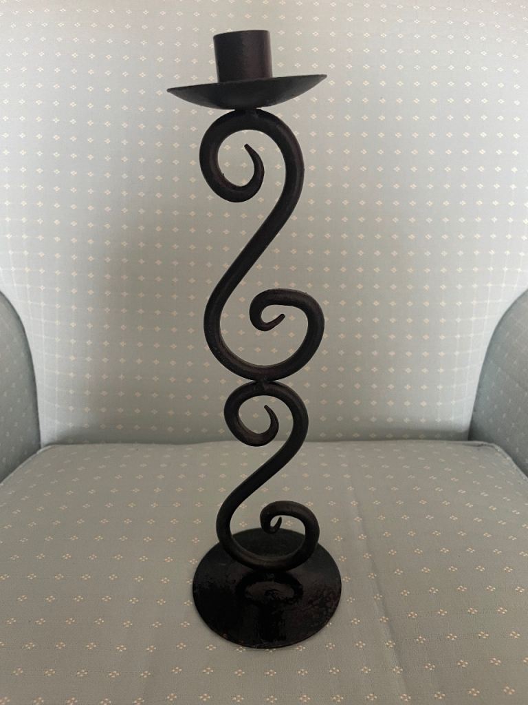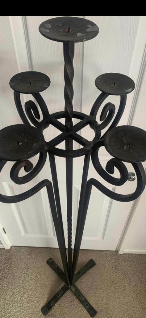 Seven (7) heavy metal candlesticks. Used once as holders for table flower arrangements at a wedding. Perfect condition. 30cm high(12 inches) Can be painted any colour to fit any colour scheme. Collect from near Kelvedon,Essex