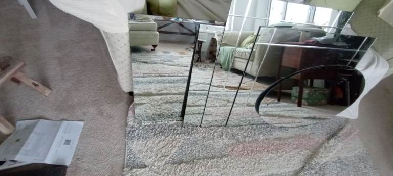 A selection of 5 wall mirrors various sizes, will sell together for £6 or individually for £2 each. No idea of age but they all show signs of wear I hadn't realised how difficult it is to take a picture of mirrors! Largest is approx 35.25ins x23