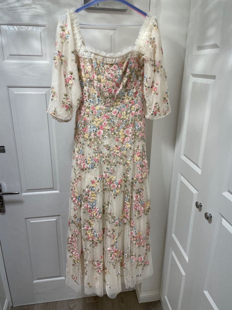 Needle & Thread dress Worn once for 1 hour Perfect condition . Like new ! Good for a wedding . Still have tags . Purchase price £699 Size UK10 In Centimetres: Bust: 86 Waist: 71 Hips:93 Length shoulder to hem: 56 inches/ 142cm