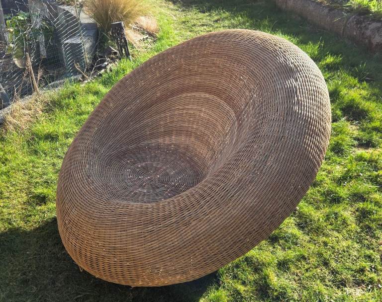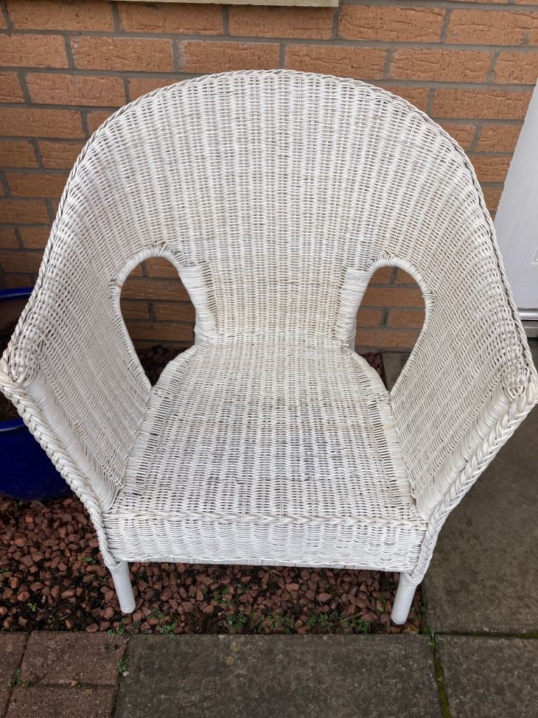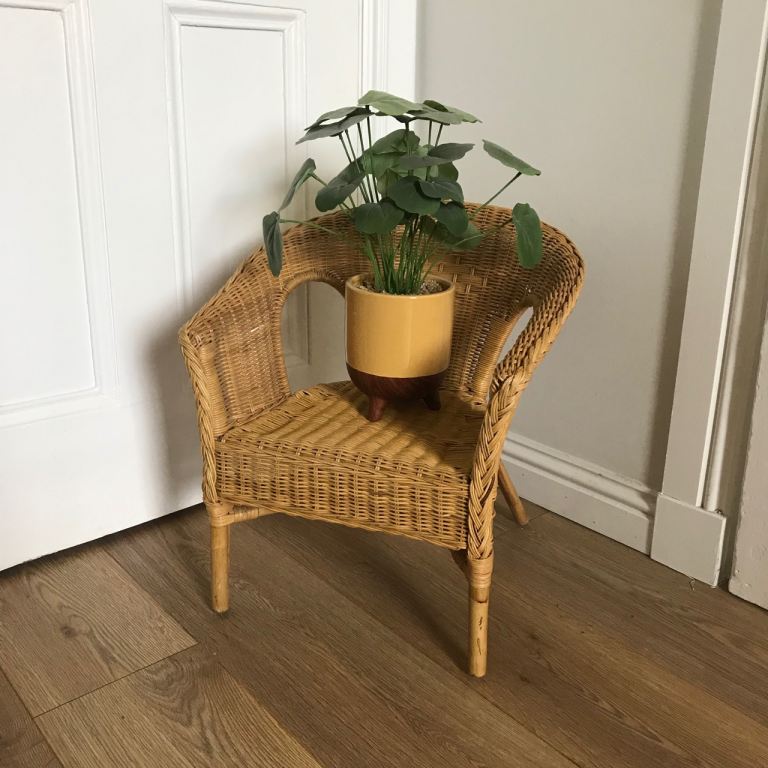 White wicker chair with handmade Frida Kahlo cushion cover and extra cushion