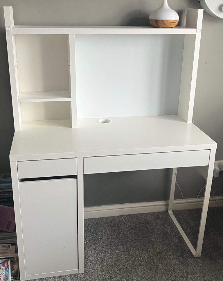 White IKEA desk. Ideal for kids bedroom. In good condition. Usual signs of use - v small chip on desktop. Measures about 130 cm in height