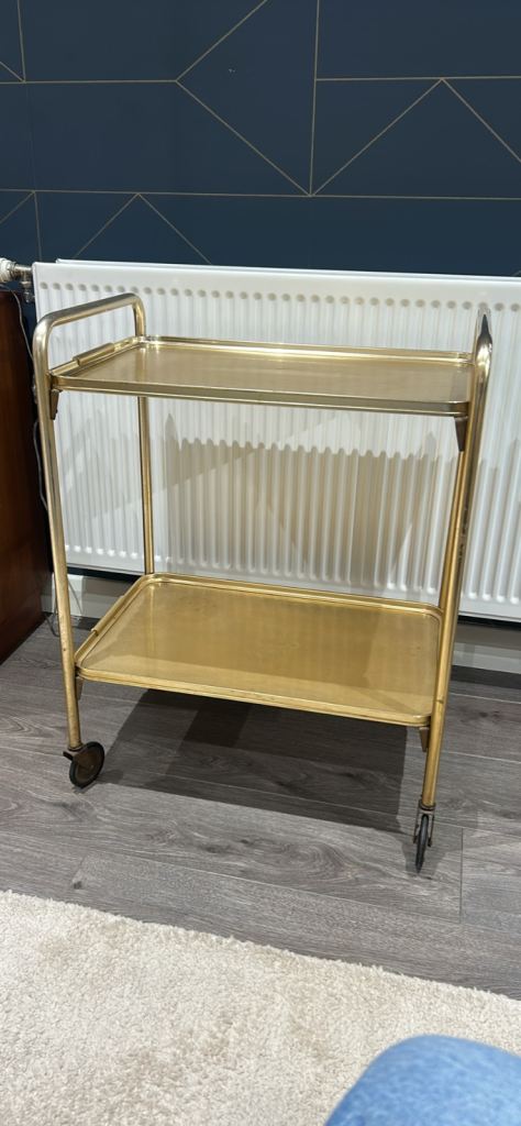 Vintage two-tier gold metal drinks trolley