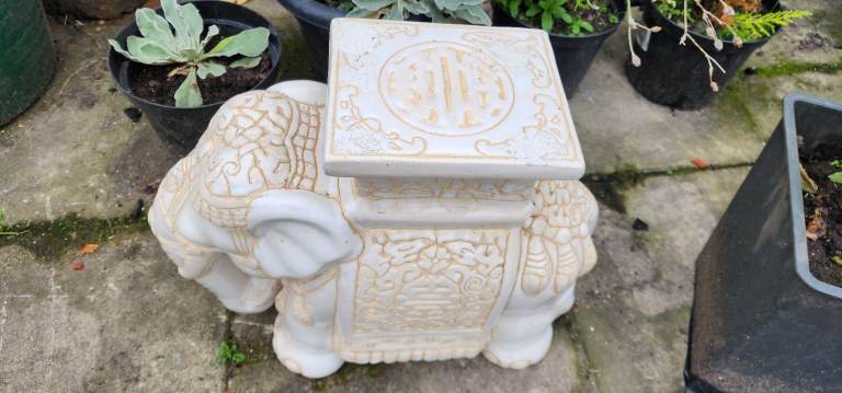 It is used but still in good condition ,no crack on it,shiny stone elephant, lovely looking garden ornament, it is approx 40 cm tall and 47 cm wide,collection from little lever, bolton, please see my other items, thank you