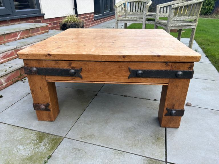 Solid oak 1 metre square coffee table with fabulous decorative edges .. halo range From baker and storehouse Height 50 cm