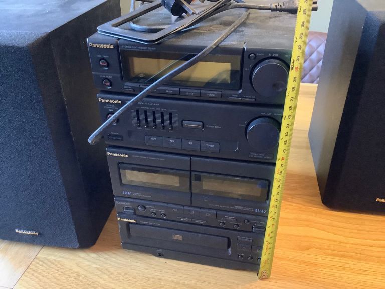 Panasonic SA-CH11 DOUBLE CASSETTE CD STEREO RECEIVER + SB-CH11 Speakers WORKING✅ This item has been fully tested to ensure it is working. Everything you’d ever need for a 90’s setup , Tapes, Cd’s & radio capability. Great sound from the sp