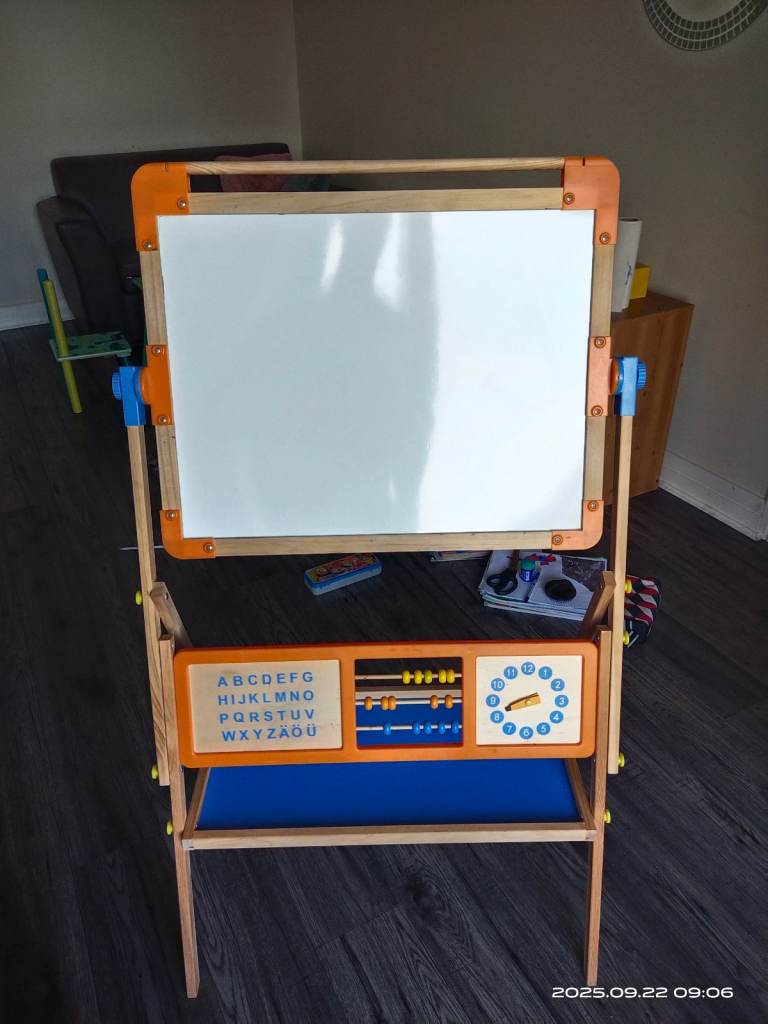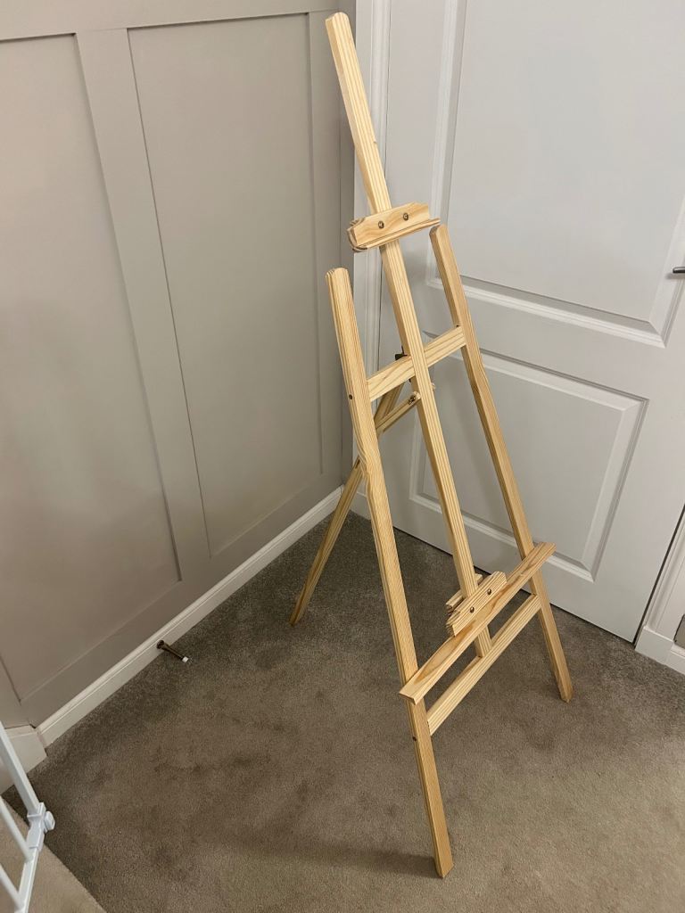 This easel and storage box was opened but never used. 13 brushes . Boldmere oils (14), Reeves oils(12) Artists acrylics (12). Many of these paints are unopened and the ones that have been used have very little used