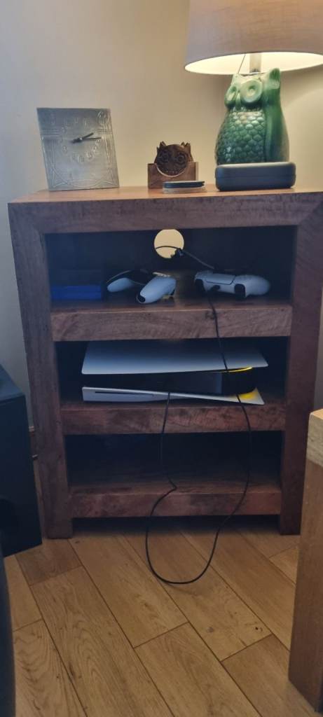Set of matching furniture: Media Console Coffee Table Group Sideboard Bookcase Mango Wood furniture collection. As new aside some varnish wear on the two small coffee tables in the 3 coffee table group. Large Coffee Table Length - 140cm
