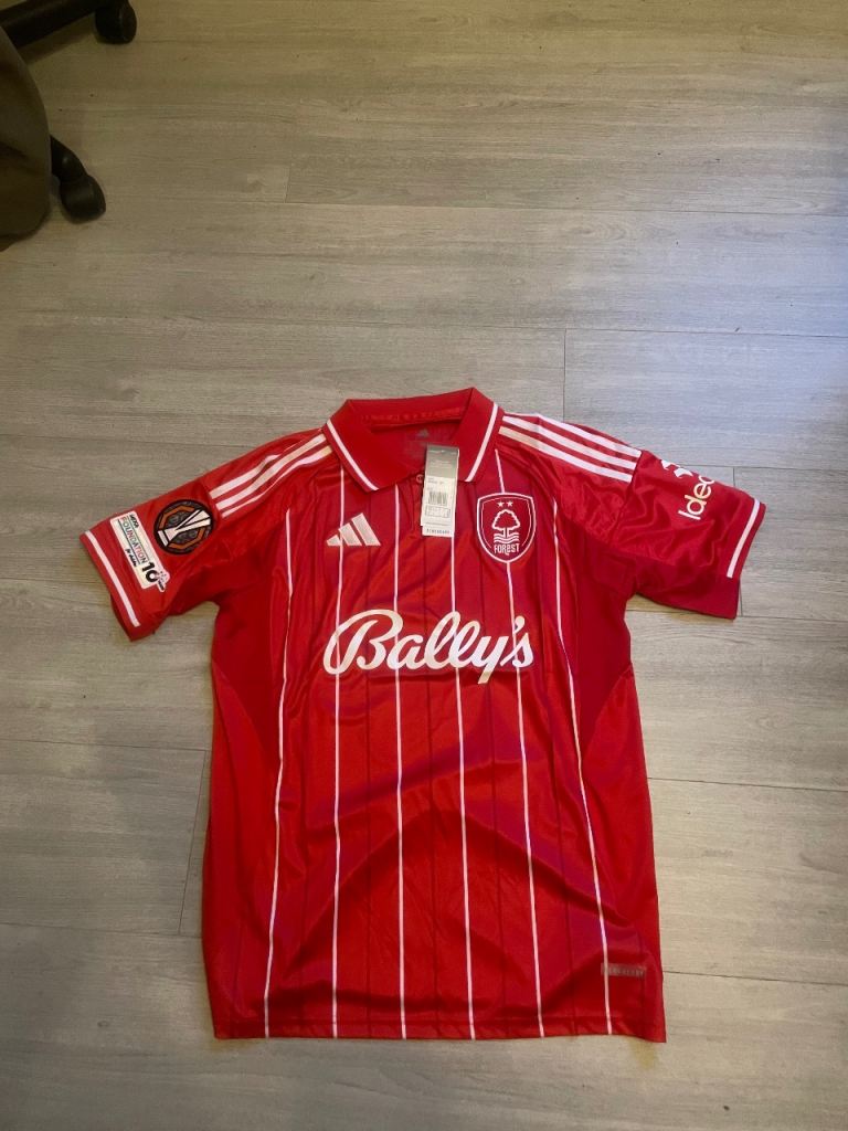 Brand new nottingham forest shirt Only small and medium left in adults £25 each Kids kits with socks Only 4/5 and 12/13 left in kids £30 each Collection clifton ng11 or can post anywhere in the UK if you cover the £3.55 postage sh