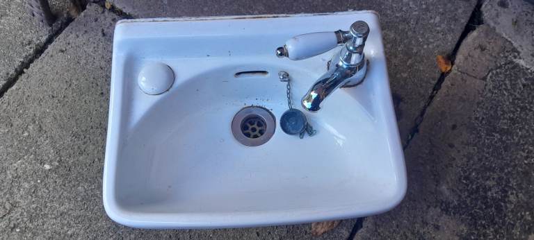 Small cloakroom sink comes as shown with tap etc