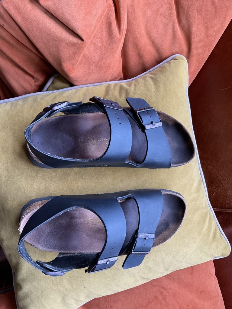 These have been well worn, still a little life left Black leather, so comfortable, to good for landfill