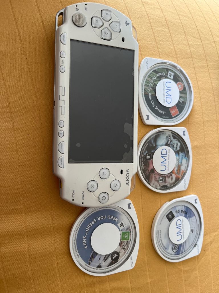 PSP 2003 Good condition! All working good! 3 game disks(one disc cover is broken) 16gb memory card with 14 games Power cable NO OFFERS