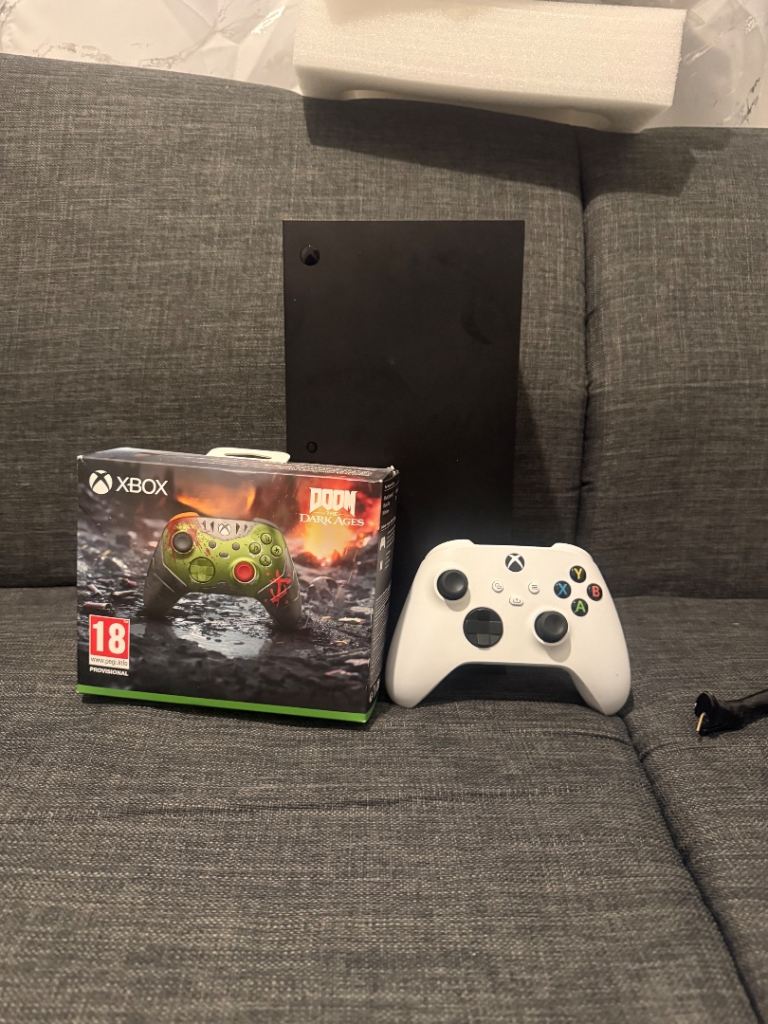 Xbox Series X console in excellent condition, no damage, no scratches. Controller is in mint condition as it has never been used. All cables included but no box which is reflected in the price. Collection only.