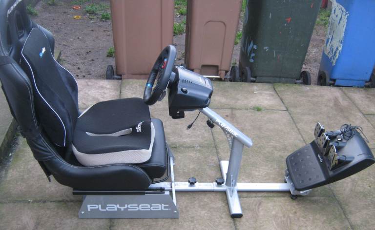 Racing Rig set up consisting of Logitech G29 Racing Wheel & Pedals with Playseat Evolution rig. 1 extra seat cushion & 1 extra back rest cushion. With Playseat manuals and all leads. Bought during Covid lockdown and used lightly since new. No rips