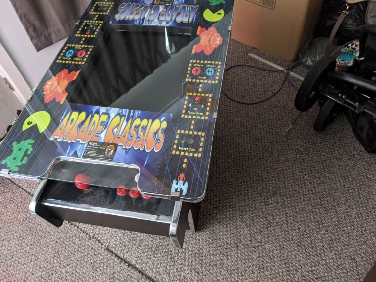 This is a classic arcade game machine with 60 classic games , all your old favourites , 2 person play on nearly all games . The size is 36x23 inches by 38 inches high, any questions please ask . Clearing out must sell