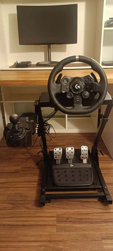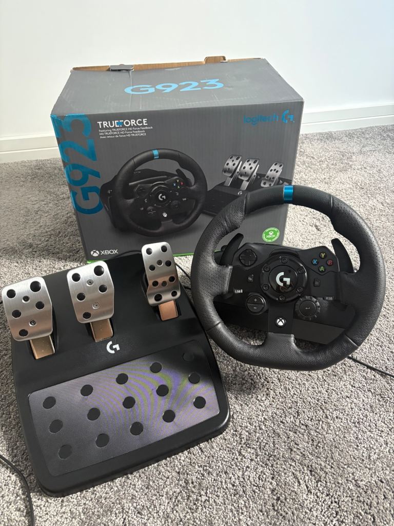 Selling my Logitech G923 Racing Wheel & Pedals (PC & PlayStation version) along with the Logitech Driving Force Shifter and a GT Omega Pro Wheel Stand. Everything is fully working and in great condition. Perfect for anyone looking to get into sim
