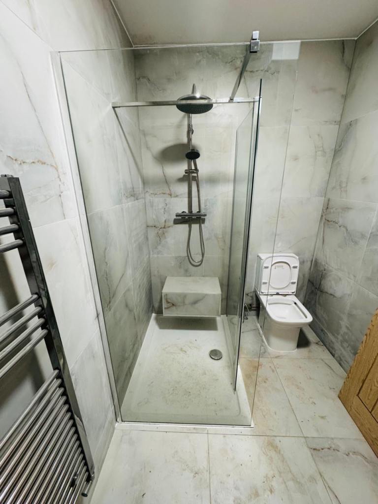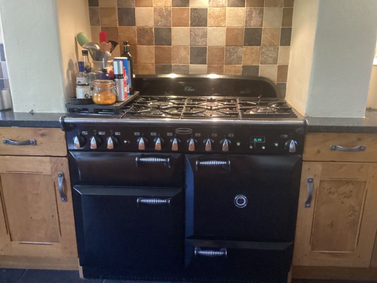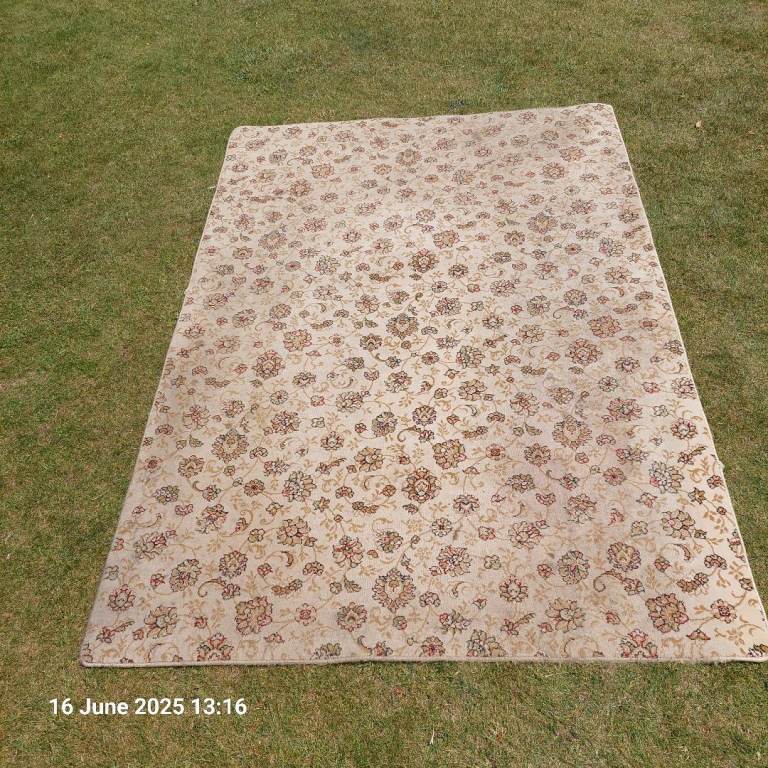 Excellent condition - new curtains. 6 ft long x 5 ft wide Washable material Rufflette tape with hooks Wooden pine pole with ends, supports and rings. Available now.