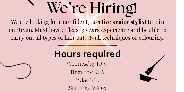 UrgentSenior hair stylistWelwyn Garden City, HertfordshireContract£12.21-£15 per hour plus commission16 hours ago