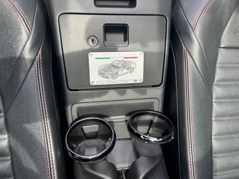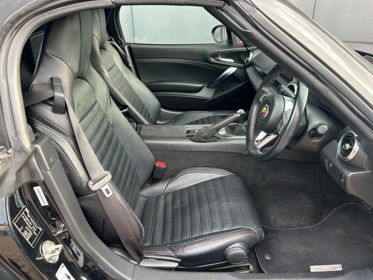 Abarth 124 Spider 1.4 T MultiAir 2dr.HERITAGE PACK*CONVERTIBLE.Cruise control + speed limiter, Drive mode selector, PAS, Trip computer, Sports suspension, 7'' touchscreen radio with bluetooth, USB, Aux-in and DAB, Audio remote control in steering wheel, Black side skirts, Body coloured bumpers, Body coloured door mirrors, Electric adjustable heated door mirrors, Electric front windows, Front/rear fog lights, LED rear lights, Side indicator repeaters, Twin exhaust tailpipes x2, 12V power outlet, 3 spoke leather steering wheel, Active head restraints, Air conditioning, Aluminium sports pedals, Front floor mats, Heated front seats, Illuminated entry system, Isofix, Leather upholstery, Passenger sunvisor with vanity mirror, Perforated leather gearknob, Rear storage compartment, Tilt adjustable steering column, ABS, Dual front airbags, ESC - Electronic Stability Control + traction control, Front seat belts warning, Front side airbags, Red brembo brake calipers, Tyre pressure monitoring system, Alarm, Immobiliser, Keyless Start, Remote central locking, Alcantara interior trim, 17'' Corsa alloy wheels, Tyre repair kit