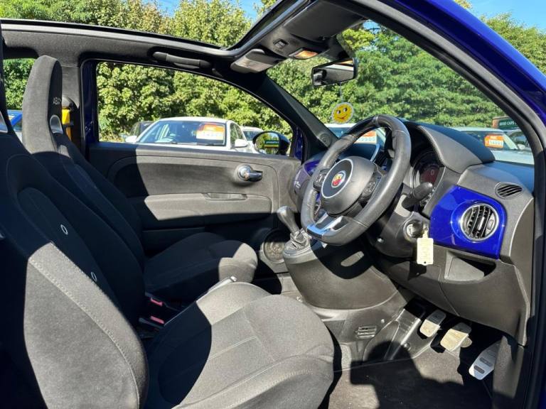 Included in the sale price we MOT and Service all of our vehicles. If you do plan to come and view any of our vehicles please ring ahead on 01483 422011. This ensures the vehicle will be easily accessible and that a member of our sales team will be free to assist you when you arrive. Disclaimer: All used cars may have had multiple drivers, which is why we take great care in their preparation. .12V Power Point, 16in Alloy Wheels - 8-Spoke Anthracite, 17in Alloy Wheels - 10-Spoke Diamond Finish, 5in Touchscreen Radio with Bluetooth - USB - DAB, 7in TFT Instrument Cluster, 7in Touchscreen Radio with - BT - USB - DAB, ABS - Anti-Lock Braking System, Airbags - Driver, Airbags - Drivers Knee, Airbags - Front Side, Airbags - Passenger, Airbags - Window, Body Colour Dashboard Cover, Central Locking - Remote, Closed Glove Box - Net Storage, EBD - Electronic Brakeforce Distribution, Electric Body Colour External Mirrors, Electric Windows - Front, Electrically Assisted Power Steering - DUALDRIVE with Sport Mode, Electronic Stability Control-ASR-Hill Holder, Fabric - Black, Fix and Go Puncture Repair Kit, Front Fog Lights, Heated Door Mirrors, High Performance Brakes, Lateral 595 Logos, Leather Wrapped Binnacle Hood, LED Day Running Lights - DRL, Matt Black Front and Rear Bumper Insert, Pack Black, Podium Blue, Poly-Elliptical Headlights, Racing Cockpit Display, Racing Steel Pedals, Satin Chrome Finished Dashboard, Satin Chrome Finished Gear Knob, Satin Chrome Finishing, Satin Chrome Finishing for All Interior Details, Seats - Height Adjustable - Front, Seats - Passengers Memory Function, Split Folding 50:50 Rear Seat, Sport Button, Steering Wheel - Height Adjustment, Steering Wheel with Viewfinder and Controls Satin Chrome Finishing, TPMS - Tyre Pressure Monitoring System, TTC - Torque Transfer Control, Twin Chrome Abarth Exhaust, Uconnect Access Via Mobile, White Illumination for Manometer, Yellow Seat Belts