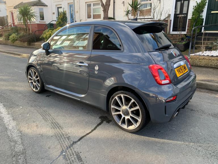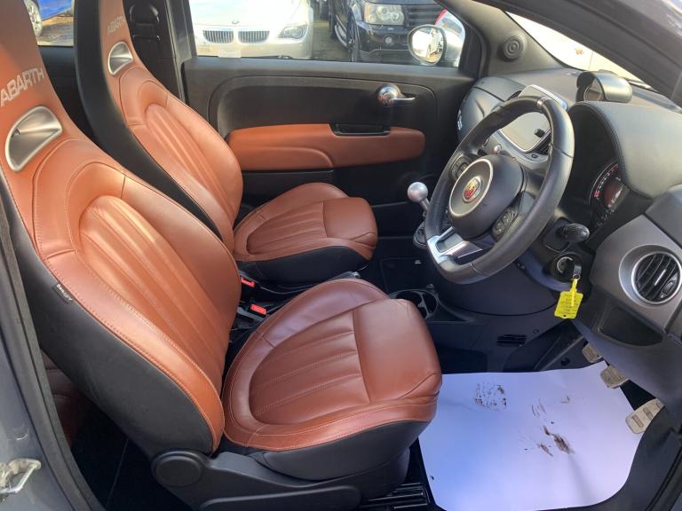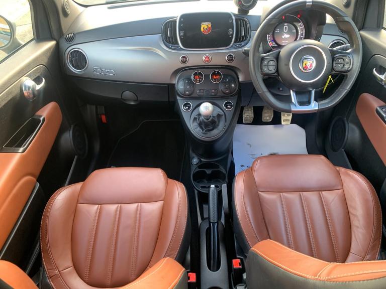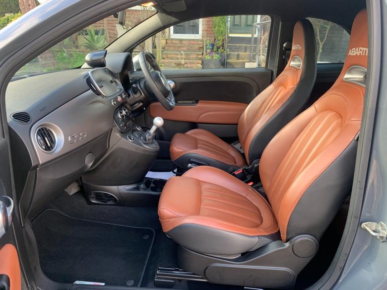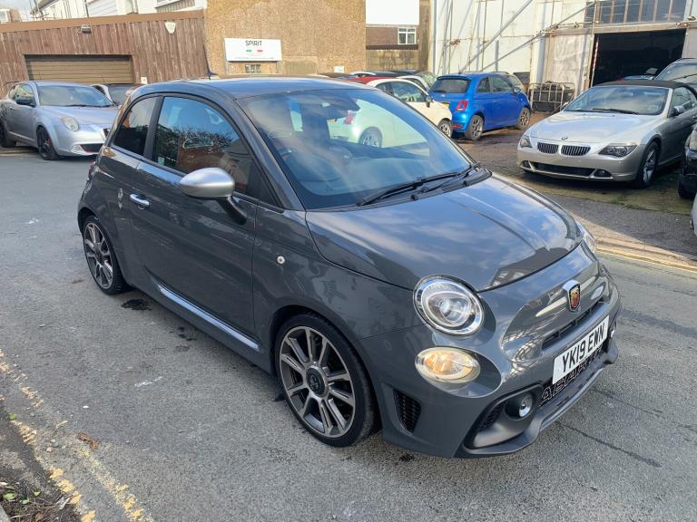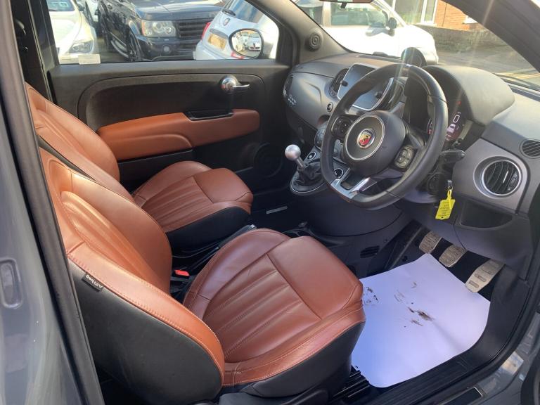 Due in 2019/19. Finished in Circuit Grey with Full Natural Leather interior. 28,000 miles with full service history. Long/new mot supplied, 5 speed manual. 2x keys and service book pack present. This is the 1.4 turbo 165 bhp Turismo spec car. and combines the comfort of leather seats but retains the sporty feeling with Koni suspension which keeps the car planted to the road! The car is a nice standard example with all the usual refinements including: Electric windows Electric heated mirrors Power steering Multi Airbags Traction control Air con Touch screen Uconnect system DAB Radio Bluetooth Parking sensors Immobiliser 17'' Alloy wheels Remote central locking Height adjustable drivers seat Rear parking sensors Climate control Auto headlights All our Fiat 500's/Abarth cars are inspected through the workshop, serviced and mot'd where applicable prior to sale and come with 6 months warranty. Please click on our Dealer stock for more quality used cars., Features Include: , 12v power point, 7in tft instrument cluster with sports mode, 7in touchscreen radio with nav - bt - usb - dab, apple carplay - android auto, uconnect 7in touschscreen dab with 6 speakers - bluetooth with audio streaming and usb, uconnect live services, 17in alloy wheels - turismo, 70th anniversary side badge, body colour front and rear bumper insert, dark tinted rear quarter windows, door mirrors - electrically adjustable and heated, electric windows - front, fix and go puncture repair kit, satin chrome finished mirror caps, twin exhausts with satin steel tailpipes, abs - anti-lock braking system, airbags - driver, airbags - drivers knee, airbags - front side, airbags - passenger, airbags - window, central locking - remote, ebd - electronic brakeforce distribution, electronic stability control-asr-hill holder, automatic climate control, dusk and rain sensors, satin grey dashboard cover, seats - height adjustable - front, split folding 50:50 rear seat, sports pedals - aluminium, steering wheel - height adjustment, bmc high performance air filter, electrically assisted power steering - dualdrive with sport mode, koni fsd rear shock absorbers, rear koni suspension, rear parking sensors, tpms - tyre pressure monitoring system, ttc - torque transfer control, front fog lights, led day running lights - drl, poly-elliptical headlights