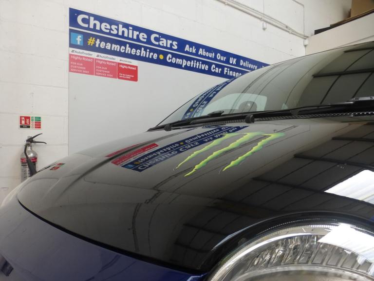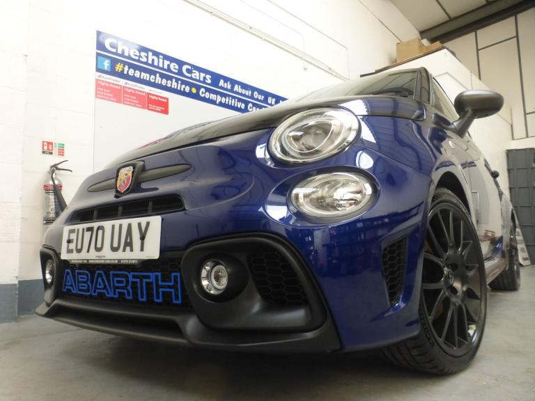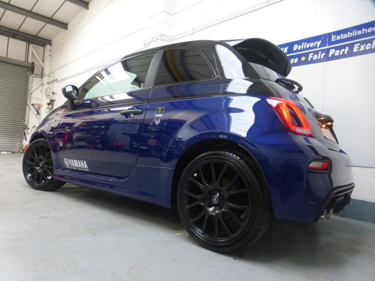 UK DELIVERY Just £100 Purchased directly from its mature private owner the car has a documented service record including recently renewed Michelin Pilot Sport 5 tyres alongside a replacement cambelt and water pump world wide production for the Yamaha Monster edition was just 2000 units with just over 100 making it to the UK so a very rare car indeed the car will receive our standard detailing package including a full machine body polish with a ceramic top coat applied whilst the interior will be forensically detailed also included is a full workshop inspection with a written report offered We are well known for Abarth sales including actively engaging with the UK Abarth Facebook group plus other regional clubs there is nothing quite like the sight and sounds of an Abarth in full chatter this car makes a statement standing still though Cheshire cars first established during 1996 offer car sales car buying car finance fair exchange and UK delivery see what our buyers and sellers think by reading a selection of our Auto trader Facebook and Google reviews having just received notification of being awarded for the 8th consecutive year the highly rated award voted on by your clients and delivered through Auto trader less than 1 of all dealers have been awarded it in consecutive years so we are delighted to be in the less than 1 group who have been Cheshire cars what can we do for you today free help and advice 7 days a week The Abarth 595 Yamaha Monster edition was born out of the collaboration between Abarth and Yamaha racing plus the Monster energy drink company and fittingly the model came with handling and exhaust upgrades to match the then mighty Yamaha R1 MotoGP bikes so you have a Record Monza Exhaust with active valve a sound you can t beat Koni FSD rear suspension matt finished black alloys unique paint finish of Podium Blue with Scorpione Black Abarth 595 Yamaha embossed headrests with blue seat stitching a Garrett GT1446 Turbo charger delivering the fuel and added performance working in harmony with the exhaust producing upwards of 165 bhp when safe and legal to do so Inside other added features includes a large 7 inch touch screen with Apple Car Play and Android Auto digital radio all voice activated climate control air conditioning automatic lights and wipers also has rear parking sensors factory fitted alongside the graphics all around the car finally a Scorpion aerial plug is fitted for the edition This advert was made by a