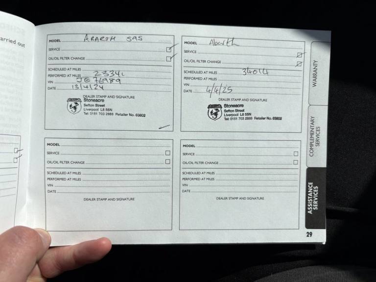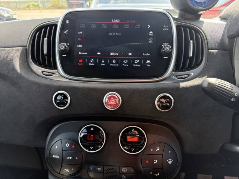 This 2021 Abarth 595 T Jet EsseEsse 70th is presented with a clear vehicle history check, offering peace of mind for its next owner. This particular model, registered in 2021, features the EsseEsse 70th trim and is powered by a lively 1.4L Petrol Engine, meeting Euro 6 emission standards. Inside, youll find a 7in Touchscreen Radio complete with navigation, Bluetooth, USB, and DAB functionality, ensuring you stay connected and entertained. Comfort is further enhanced by Automatic Climate Control, and for seamless smartphone integration, it includes Apple CarPlay and Android Auto. Parking is made simpler with Rear Parking Sensors. Experience exhilarating performance with this Abarth 595, boasting an impressive 0-60mph acceleration time of just 6.7 seconds. This swift acceleration demonstrates how this vehicle offers a more dynamic driving experience compared to many others in its class. The combination of its sporty engine, advanced infotainment system, and convenient parking aids makes this Abarth 595 T Jet EsseEsse 70th a compelling choice for those seeking both performance and modern features..Abarth Side Stripes and Mirrors - Gloss Finish - White, Scorpione Black, 12V Power Point, 17in Alloy Wheels - White Supersport, 70th Anniversary Side Badge, 7in TFT Instrument Cluster with Sports Mode, 7in Touchscreen Radio with NAV - BT - USB - DAB, ABS - Anti-Lock Braking System, Abarth Mechanical Limited Slip Differential, Abarth Side Stripe and Door Mirrors - Gloss Finish - Black, Abarth Side Stripe and Door Mirrors - Gloss Finish - Red, Abarth Side Stripe and Door Mirrors - Gloss Finish - White, Abarth Side Stripes and Mirrors - Gloss Finish - Red, Airbags - Driver, Airbags - Drivers Knee, Airbags - Passenger, Airbags - Window, Alcantara Wrapped Binnacle Cover, Apple Carplay - Android Auto, Automatic Climate Control, BMC High Performance Air Filter, Central Locking - Remote, Dark Tinted Rear Quarter Windows, Door Mirrors - Electrically Adjustable and Heated, EBD - Electronic Brakeforce Distribution, Electric Windows - Front, Electrically Assisted Power Steering - DUALDRIVE with Sport Mode, Electronic Stability Control-ASR-Hill Holder, Exhaust Tailpipe - Akrapovic, Fix and Go Puncture Repair Kit, Front Fog Lights, Koni Front and Rear Shock Absorbers, LED Day Running Lights - DRL, Poly-Elliptical Headlights, Rear Parking Sensors, Red Brembo Brake Calipers, Scorpion Antenna Plug, Split Folding 50:50 Rear Seat, Sports Pedals - Aluminium, Sports Steering Wheel in Leather and Alcantara with Carbon Fibre Detailing, Steering Wheel - Height Adjustment, TPMS - Tyre Pressure Monitoring System, TTC - Torque Transfer Control, Uconnect 7in Touschscreen DAB with 6 Speakers - Bluetooth with Audio Streaming and USB, Uconnect Live Services, White Stripe Front Bumper Inserts and Door Mirrors