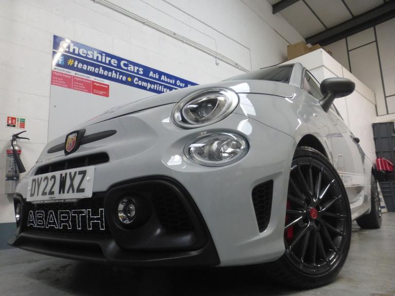 Purchased directly from its private family after a change in circumstance this Campovolo Grey 595 Competizione is ready to start its new life with a new owner fully serviced by Abarth we have the service and handbooks a locking wheel nut key plus a spare key each vehicle is highly detailed including a ceramic top coating being applied and workshop inspected a full UK wide warranty is offered in addition to your statutory rights the business was started during 1996 by David Bilsborough we are in the less than 1 of dealers who have been awarded Auto traders highly rated award each year since the awards started the awards are voted on by your clients so we are delighted that we have for 8 years been voted to retain the standard Since 2011 Cheshire cars have offered a UK Delivery service with all its vehicles very many buyers have found the service really useful so with this Abarth we can deliver the car for just £150 if you require however you are most welcome to travel up to see the car here for yourself also available is exchange and finance We are very active within the Abarth community both with buying and selling so we can certainly say that to get the most out of ownership why not consider joining your local Abarth Owners Club it is a very active way to enjoy ownership This Competizione example has all the ingredients to keep your smile bright with its engine producing 180 bhp using a Garrett GT1446 turbo charger and a Record Monza with active valve exhaust braking is upgraded with larger front Red Brembo Calipers with both front and rear discs being drilled you also benefit from Koni FSD damping nice Monte Carlo grey alloys rear privacy glass a 7 inch multi media screen which is voice activated and includes Apple Car Play and Android Auto electronic climate controlled air conditioning is standard we have fitted by a way of individual styling a White Abarth side stripe making the car really stand out Once you have familiarised yourself with the car you have a Scorpion button which drastically uplifts the engines performance and handling of course only use when it is safe and legal to do so PLEASE NOTE DELIVERY IS PLUS VAT THIS ADVERT IS WRITTEN BY A HUMAN NOT A AI PROGRAMME We do not edit any images or the video each image and video are originals