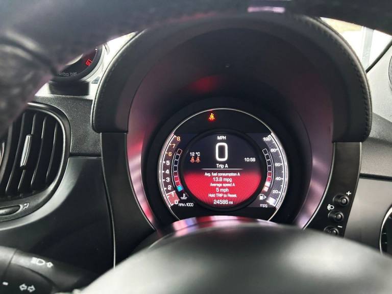 This 2022 Abarth 595 T Jet F595 Pista boasts an MOT valid until March 2026, offering you peace of mind for the road ahead. This particular F595 Pista model is equipped with a lively 1.4 litre petrol engine, meeting Euro 6 emission standards. Experience exhilarating performance with a swift 0 to 60 miles per hour acceleration time of just 7.3 seconds. This impressive figure demonstrates the vehicles capability and responsiveness, setting it apart from other cars in its class. Welcome to MotorTrustUK, where exceptional standards and customer satisfaction are at the forefront of our service. All of our retail vehicles undergo a rigorous 128-point mechanical inspection, independently carried out by a qualified AA technician, to ensure the highest level of reliability and safety. Should any vehicle have less than six months remaining on its MOT or be due a service, these requirements will be addressed prior to delivery. For added reassurance, we include a complimentary nationwide warranty with all qualifying vehicles. With approximately 1,500 vehicles currently in group stock, a number that continues to grow, we are pleased to offer part exchange services, accept all major credit and debit cards, and provide flexible finance options, including HP, PCP, and subprime solutions. Nationwide delivery can also be arranged by quotation. While every effort is made to ensure accuracy in vehicle specifications and descriptions, details may vary; we encourage all customers to speak with a member of our sales team to confirm key information such as MPG figures, available keys, or any factory modifications. To ensure smooth processing and support, an administrative fee is applied to all completed sales. We look forward to assisting you in finding your next vehicle with confidence at MotorTrustUK. .17in Alloy Wheels - Formula - Matt Black Finish, 7in TFT Instrument Cluster with Sports Mode, ABS - Anti-Lock Braking System, Active Record Monza Sovrapposto Exhaust with Rotated Tips, Airbags - Driver, Airbags - Passenger, Apple Carplay and Android Auto, BMC High Performance Air Filter, Door Mirrors - Electrically Adjustable, Electric Power Steering, Electric Windows - Front, Front Fog Lights, Front and Rear Bumper Inserts and Door Mirrors - Red, Koni Suspension with FSD Technology - Frequency Selective Damping, LED Day Running Lights - DRL, Matt Black Dashboard Cover, Pista Badge, Poly-Elliptical Headlights, Rear Parking Sensors, 7in Touchscreen Radio with NAV - BT - USB - Aux-In - Audio Streaming and DAB, Red Brake Calipers, Satin Chrome Finished Handles and Badge Surrounds, Black Brake Calipers, Seats - Abarth Sports Seats, Seats - Height Adjustable - Front, Fabric - Black, Front and Rear Bumper Inserts and Door Mirrors - Black, Sport Button, Sports Leather Steering Wheel with Controls and Satin-Chrome Detailing, Gara White, TTC - Torque Transfer Control, Uconnect 7in Touschscreen DAB with 6 Speakers - Bluetooth with Audio Streaming and USB, Uconnect Live Services, Wake Up Screen for 7in Radio, Window-integrated Aerial with Aluminium Roof Cap