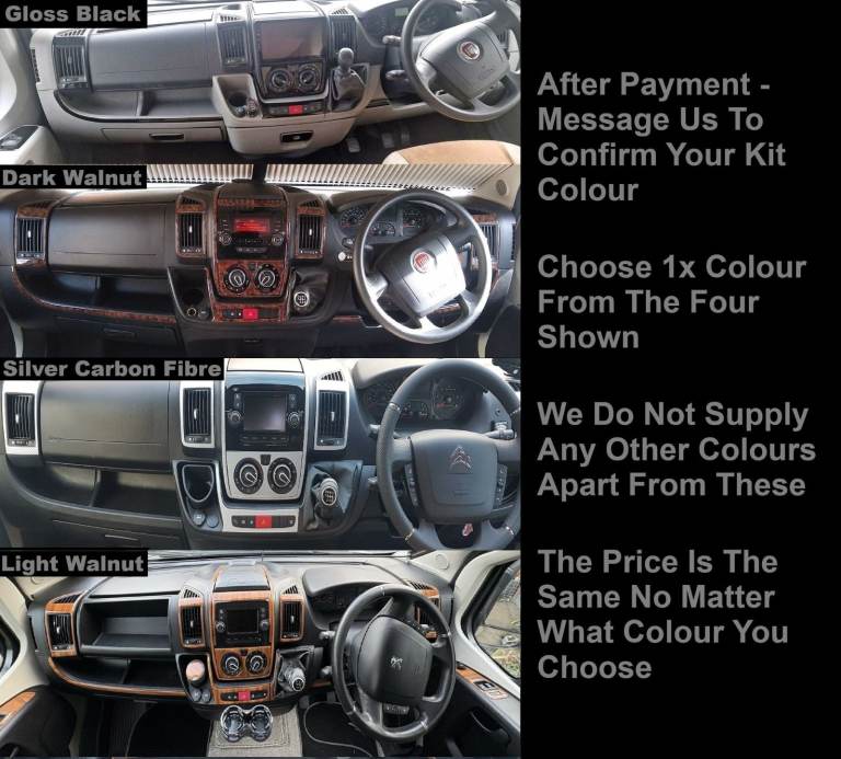 Posting for 2+ monthsFiat Ducato MK3/4 Van & Motorhomes - Gloss Black - Walnut - Silver Carbon - Stick On Dash Kit