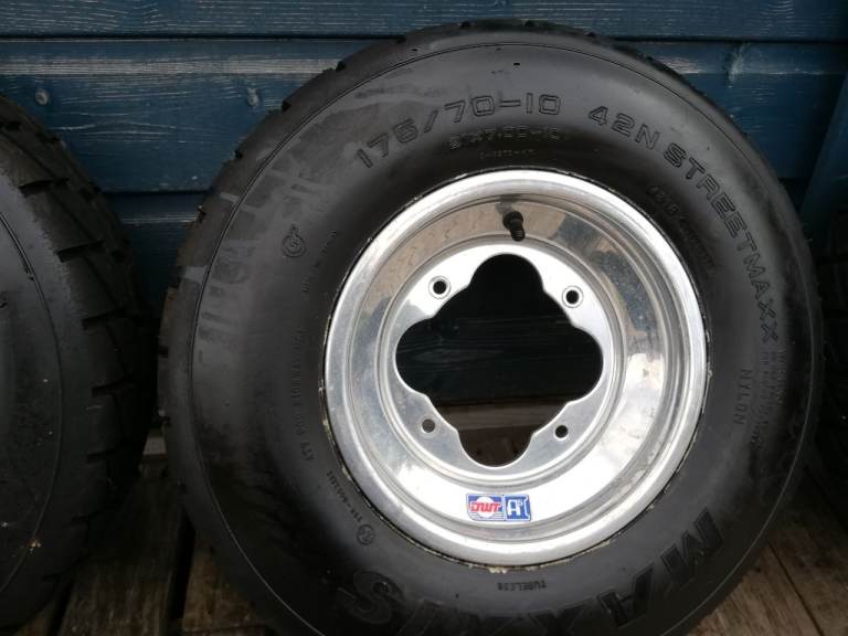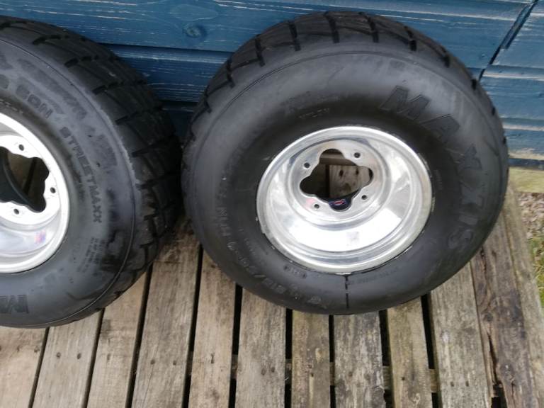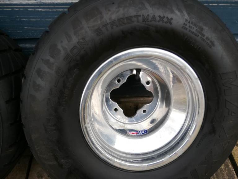 Douglas Wilson racing alloys for yamaha raptor 700 may fit other models,wheels and tyres only done abt 200 miles
