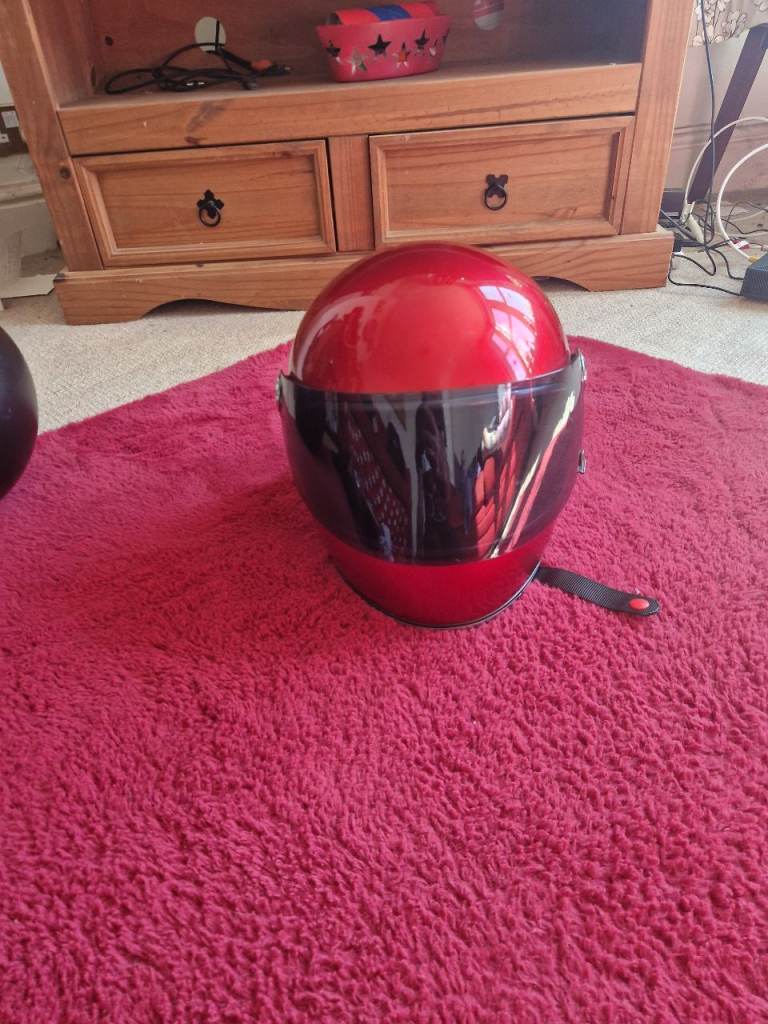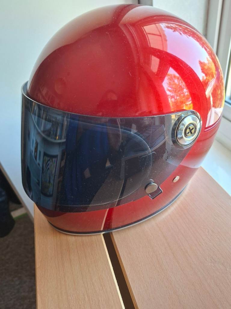 Up for grabs is my Biltwell Gringo S full-face helmet in Large (59–60 cm), finished in a stunning Candy Red – a deep gloss tone with a soft sparkle that looks amazing in sunlight (originally chosen to match my custom-painted bike).