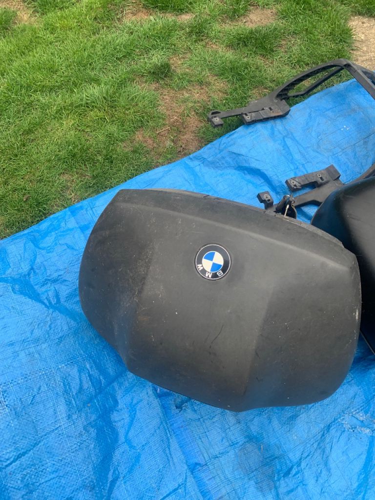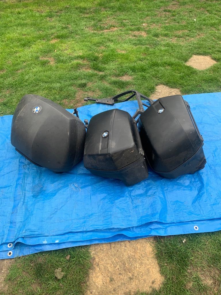 Here we have my full BMW HARD LUGGAGE SET INCLUDING THE RACK AND KEYS.