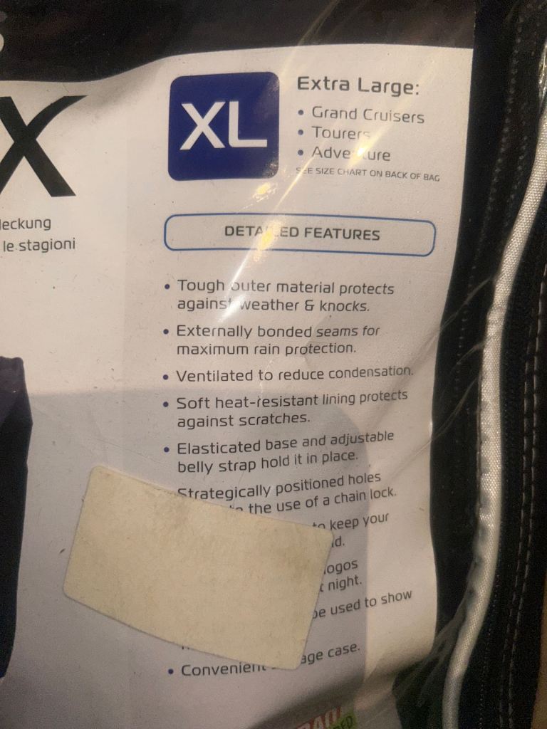Up for grab is this brand new Oxford stormex motorbike cover in size XL