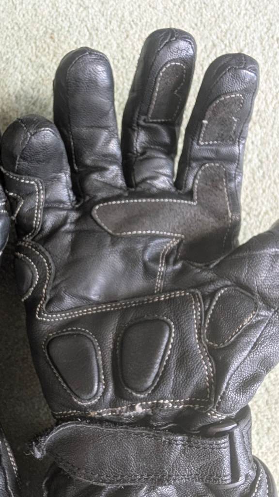 Selling my Buffalo leather gauntlet-style motorcycle gloves. These are great for sport or road riding and offer solid protection. They are well-broken-in and much more comfortable than a stiff new pair. Warm padding inside