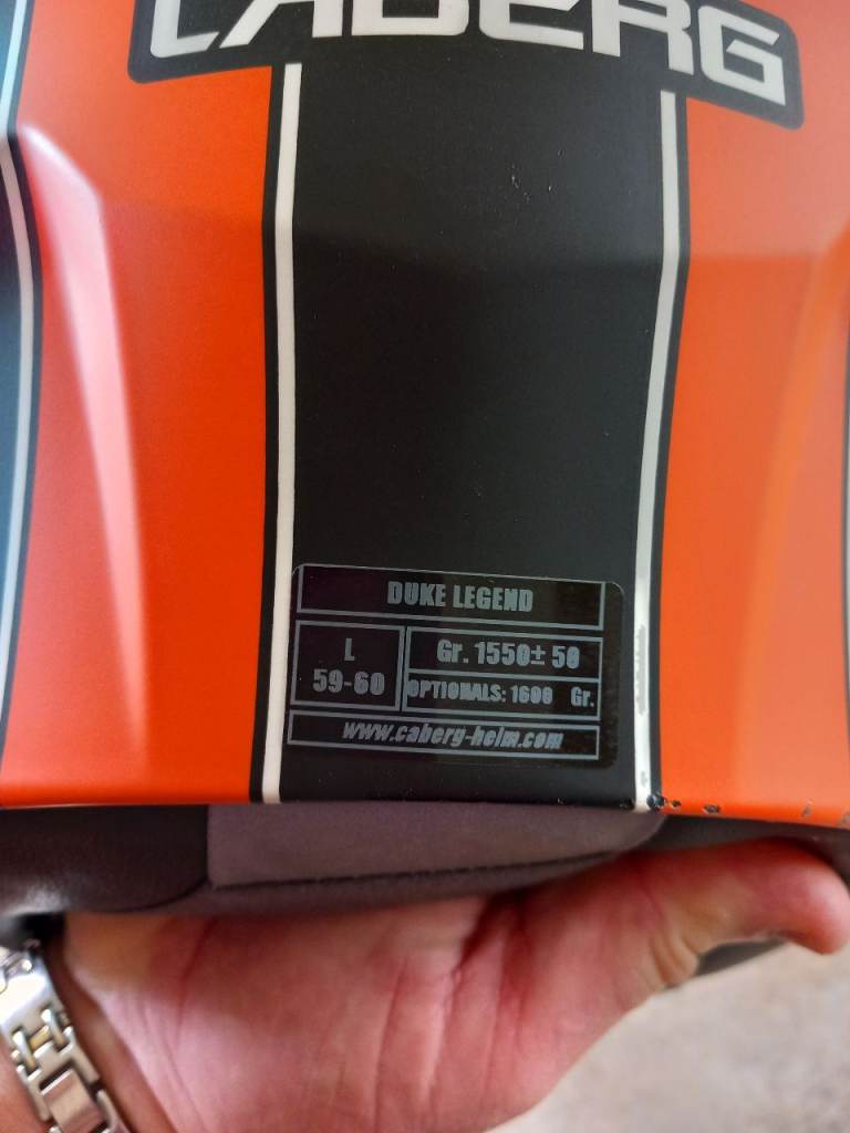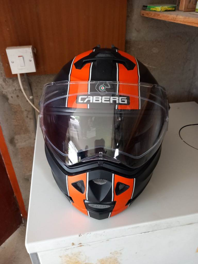 Caberg Duke Legend motorcycle helmet in black and orange. Size large 59-60. Wrong size ordered so never worn or dropped.