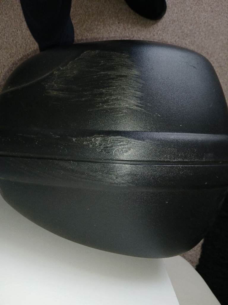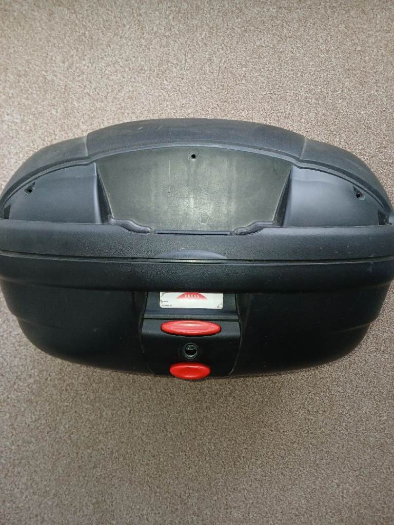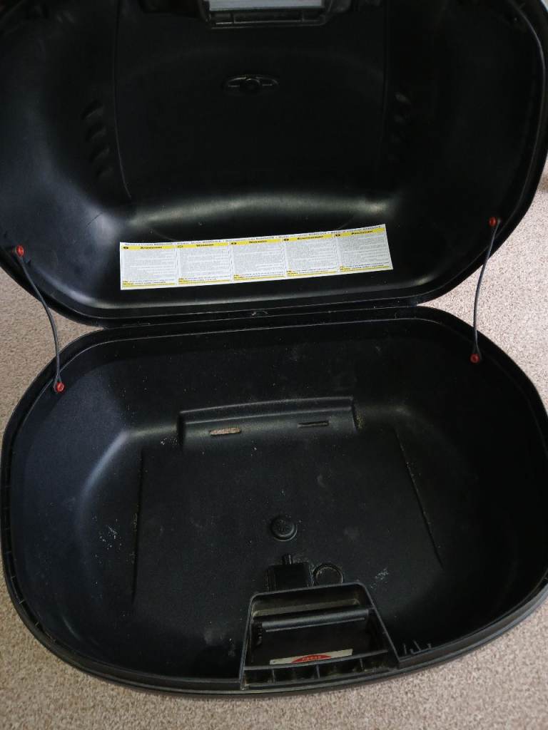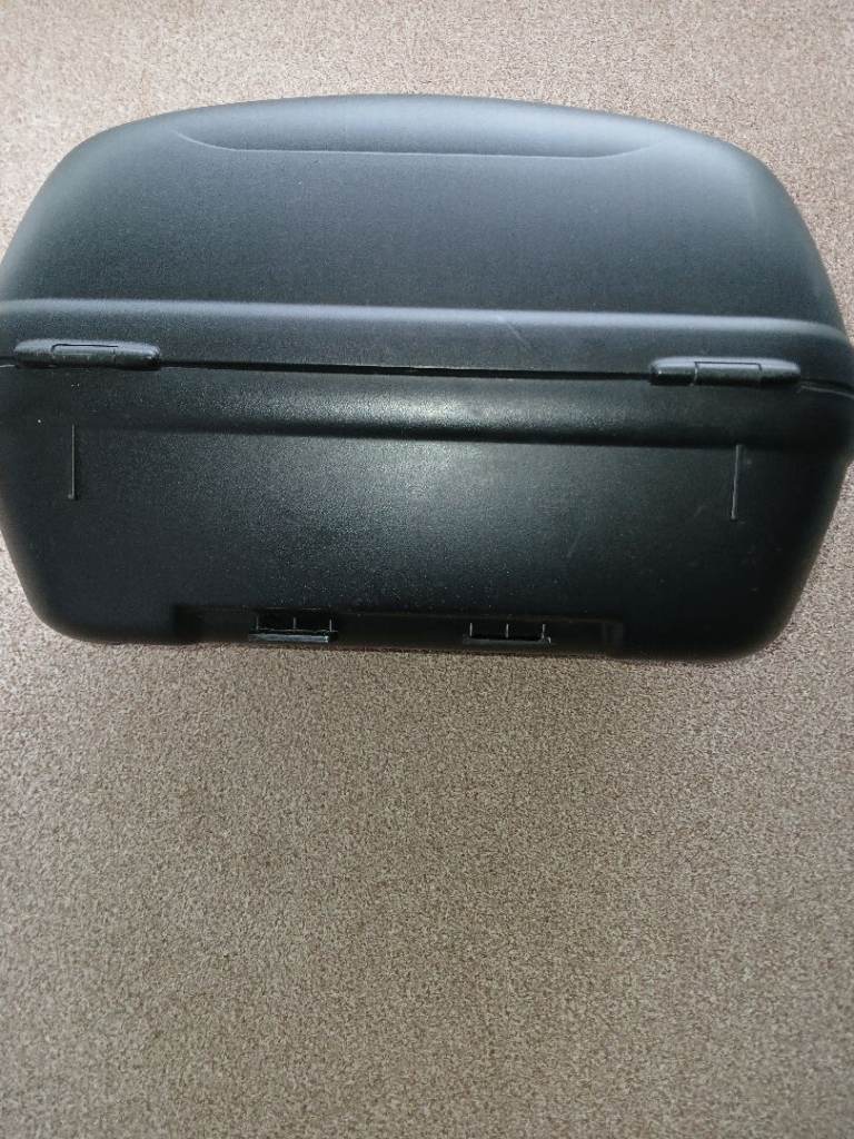 Givi Simply monolock topbox 45 litre, damaged as in photos and 1 locating lug broken off but lid still fastens securely has a lock with two keys. Could be adapted to fit on rack. £15 Collection preferred Newcastle-under-Lyme.