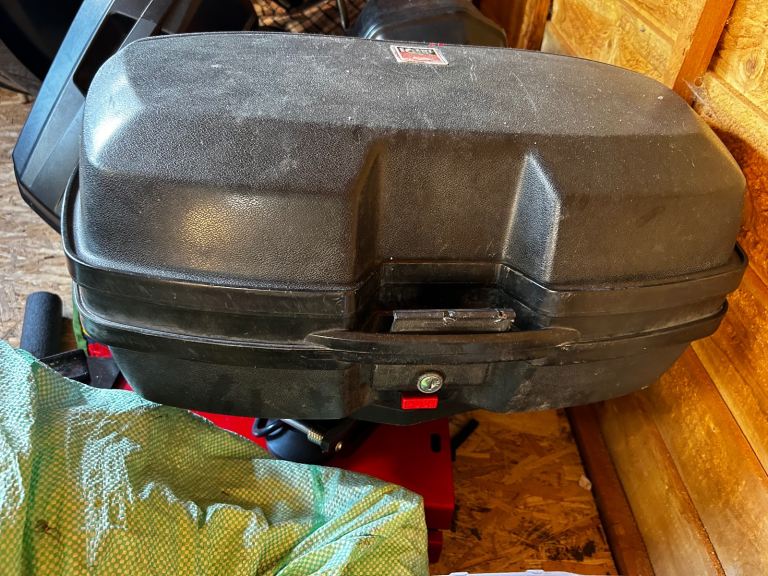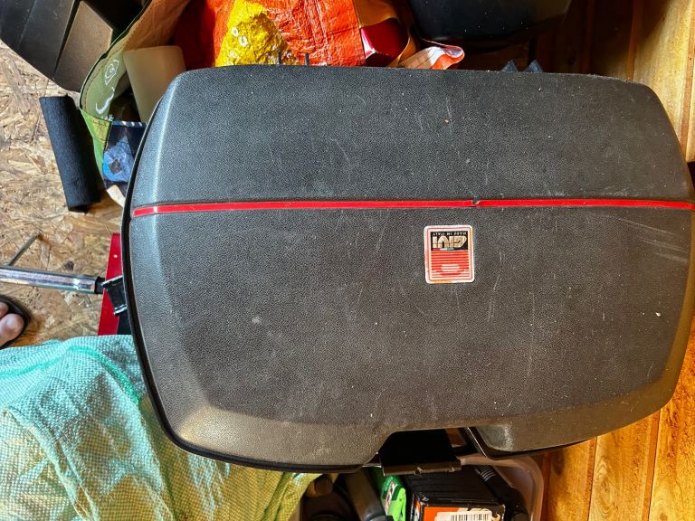 Givi Large top box and plate. Key broke off in the lock but am sure it can be picked out and have a spare key with it