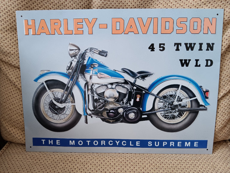 Posting for 12+ yearsHarley-Davidson 45Twin WLD sign.