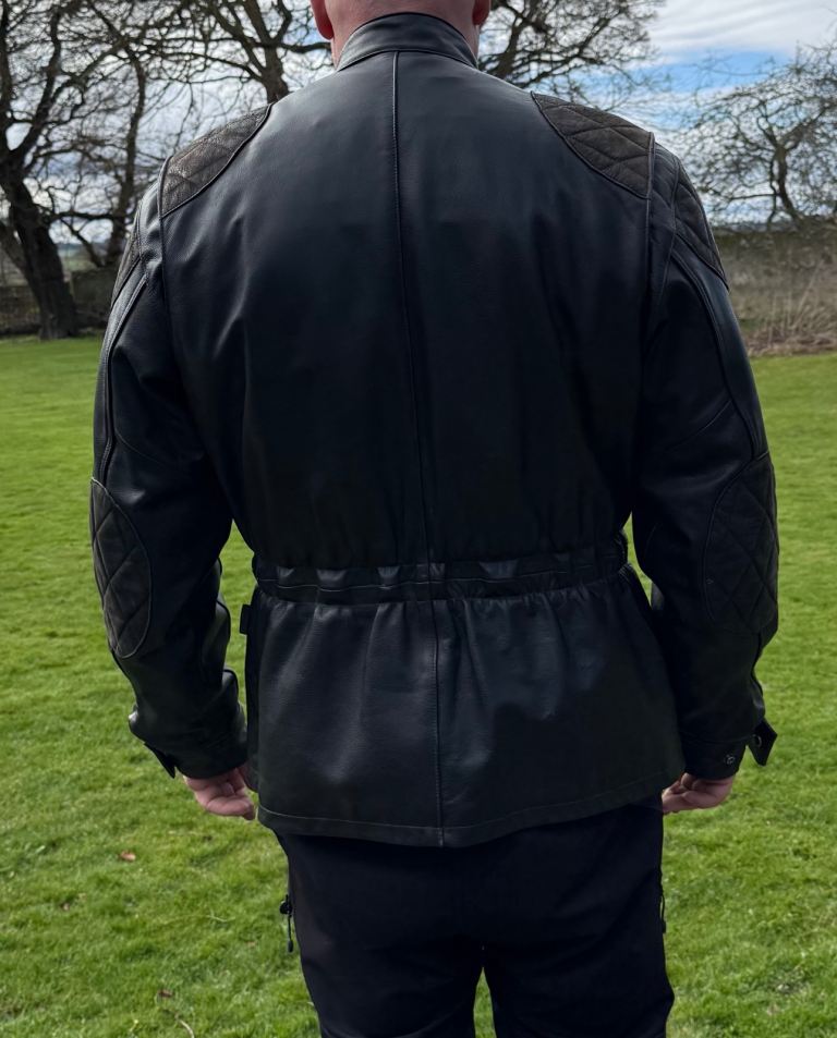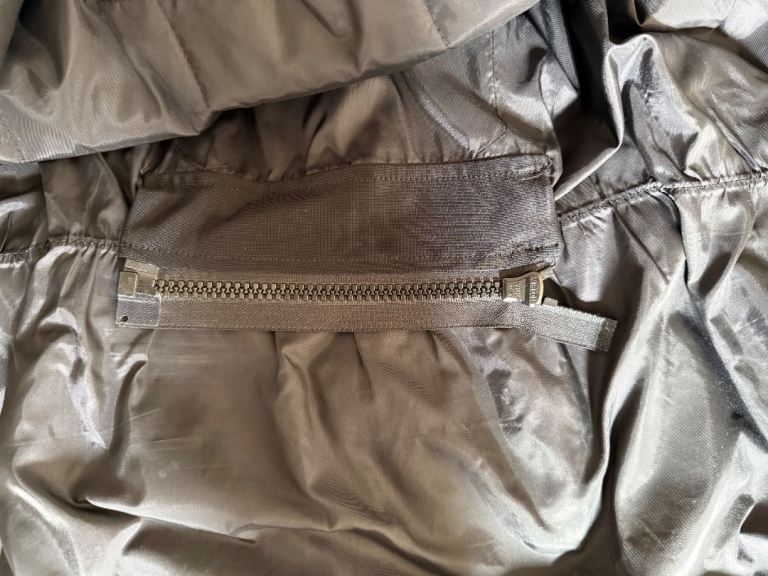 This jacket is extremely heavy, it has four pockets to the front and an internal pocket within the removable liner. It is also fitted with a rear lower zip to attach to any suitable trousers.