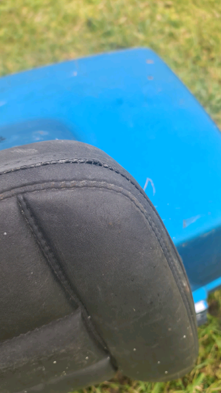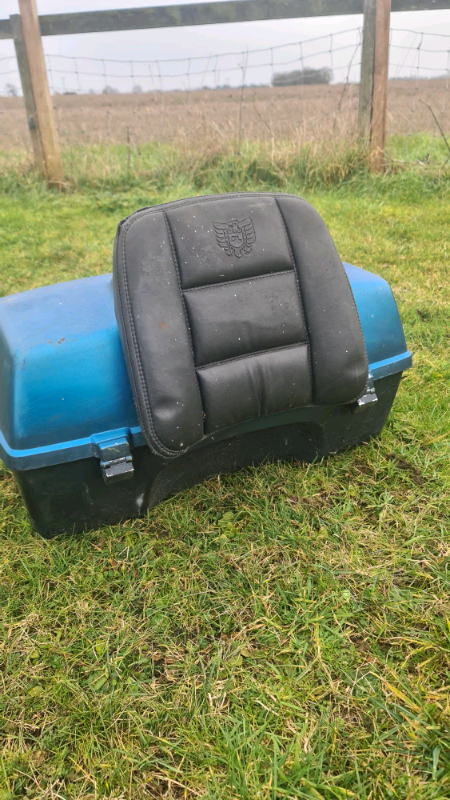 The box is sturdy though it does need some love. There is some stitching coming away on the seat and the paint is tatty with plenty of signs of use. Part of the base has broken so would benefit from a repair but the mounting bracket is sound. I haven't tested the lights though all wiring and connectors appear present. Ideal as spares or for anyone with time to repair it. Unlocked but no keys supplied.