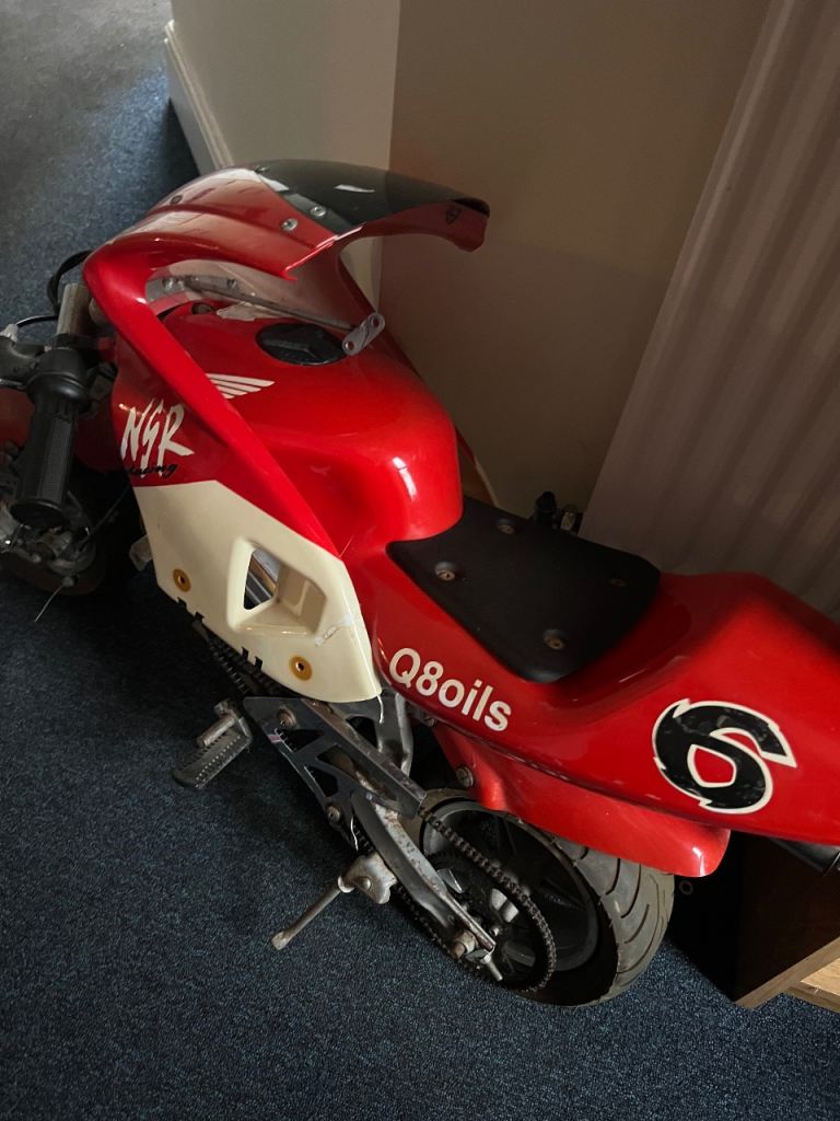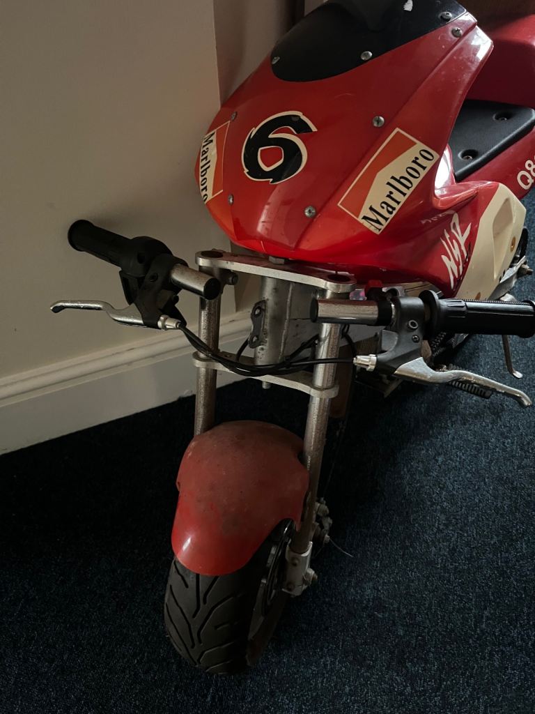 Small mini motorbike / pocket bike for sale. This bike is not currently running, so it is being sold as-seen and would be ideal for spare parts, a project, or for someone who enjoys fixing and restoring bikes.