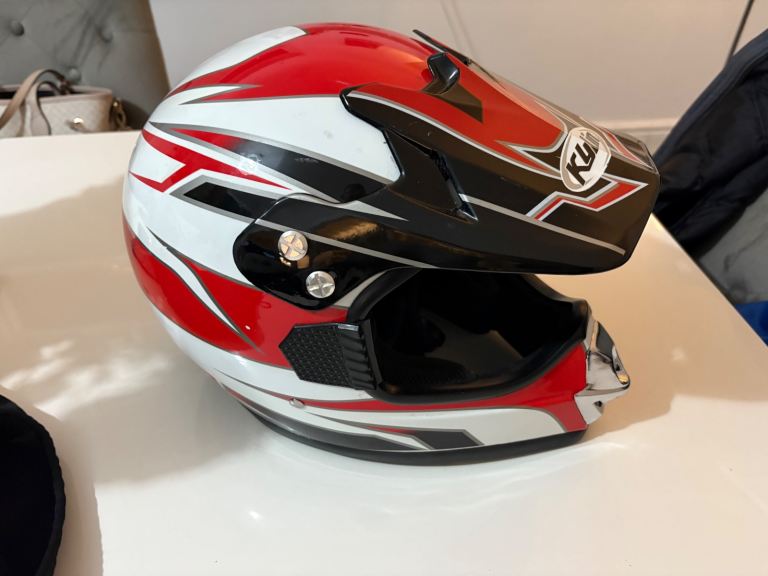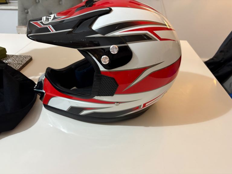 White and red motor cross helmet - large