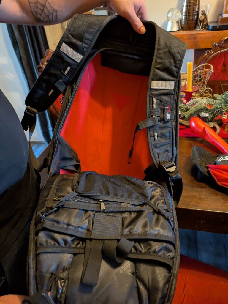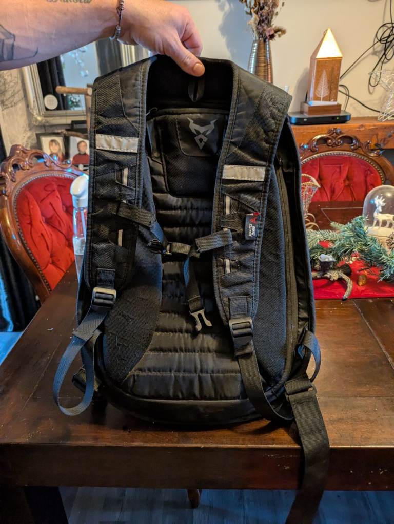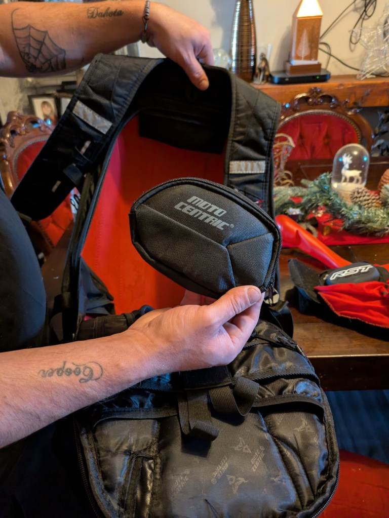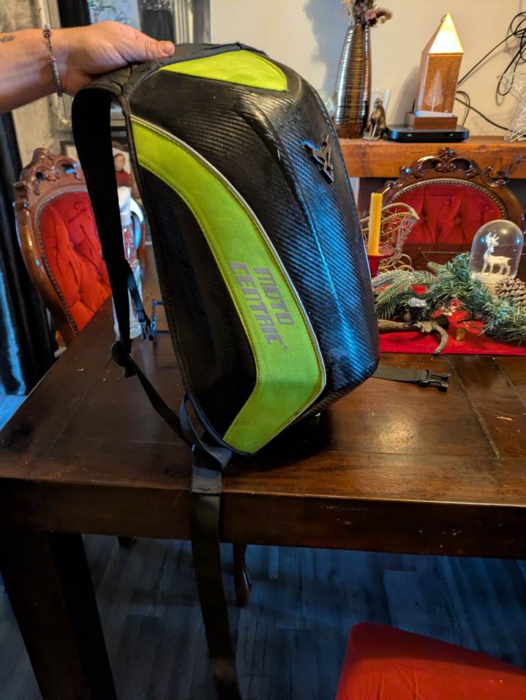 Hard shell Moto centric backpack with small accessory bag. Good condition.
