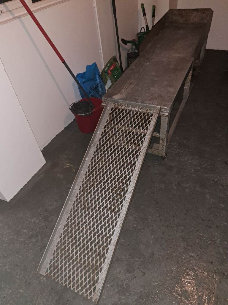 Good solid motorbike work bench. Great for projects or service..really nice height for working on bike. Fold away ramp. Very solid and heavy